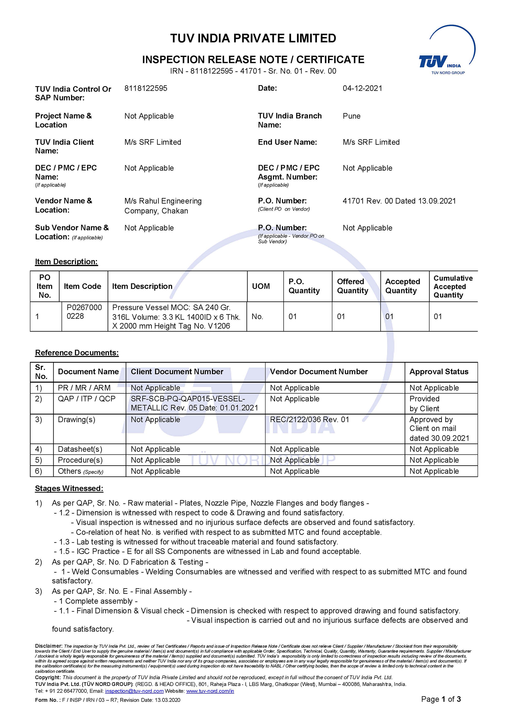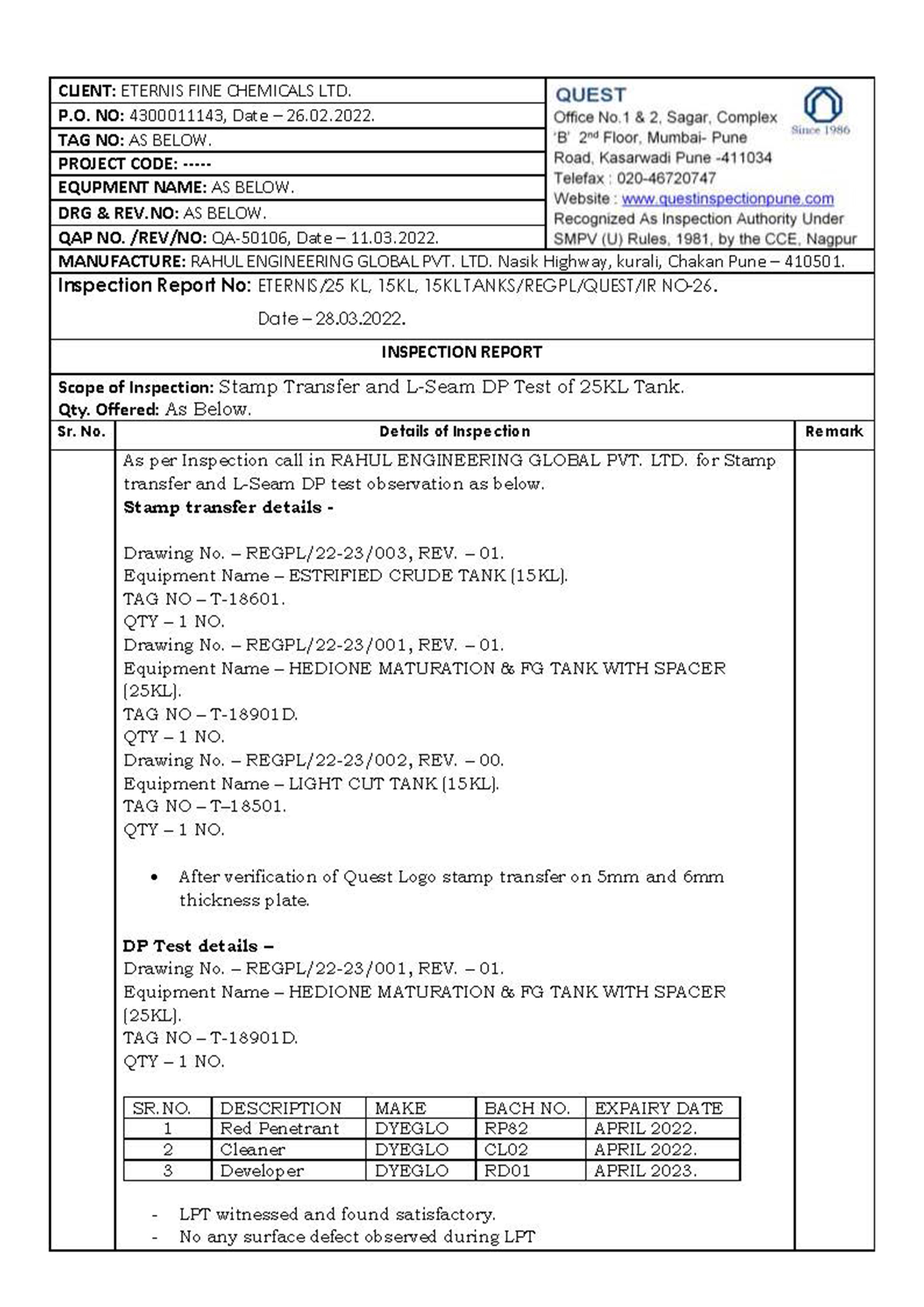 TUV-Nord, TUV-Rheinland, Quest, BVQI, ICS, IJT, Chempro, IIB, Electormech